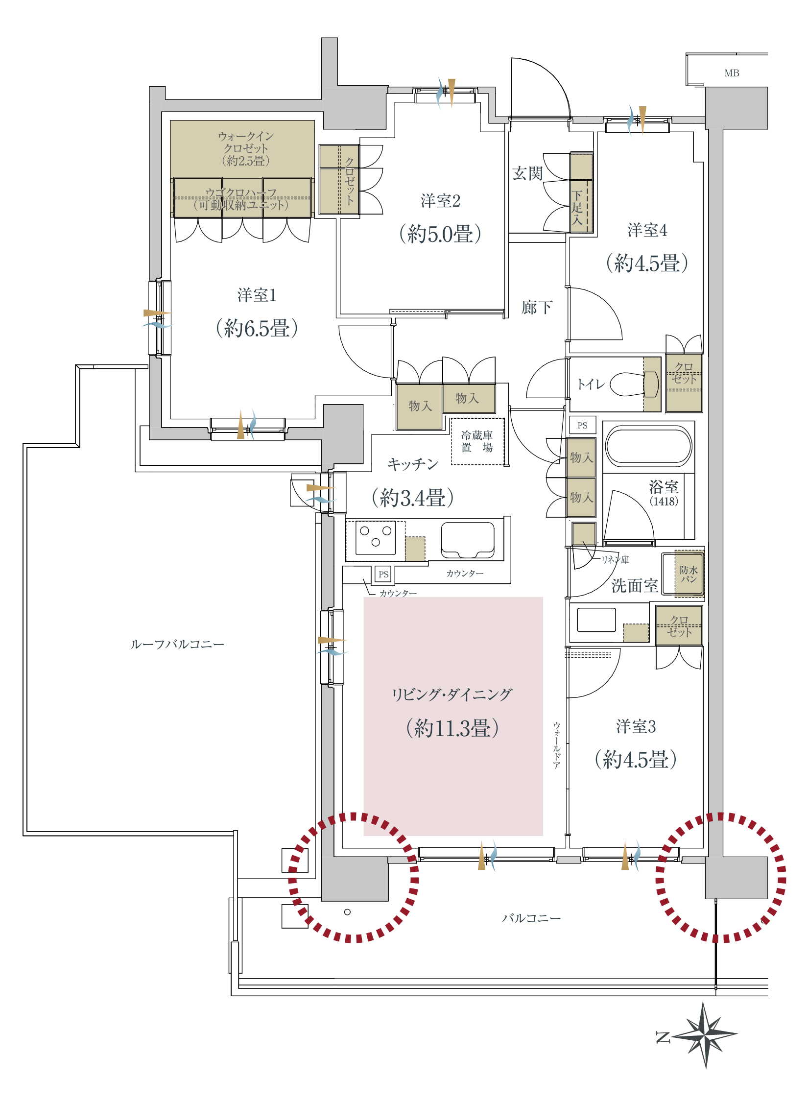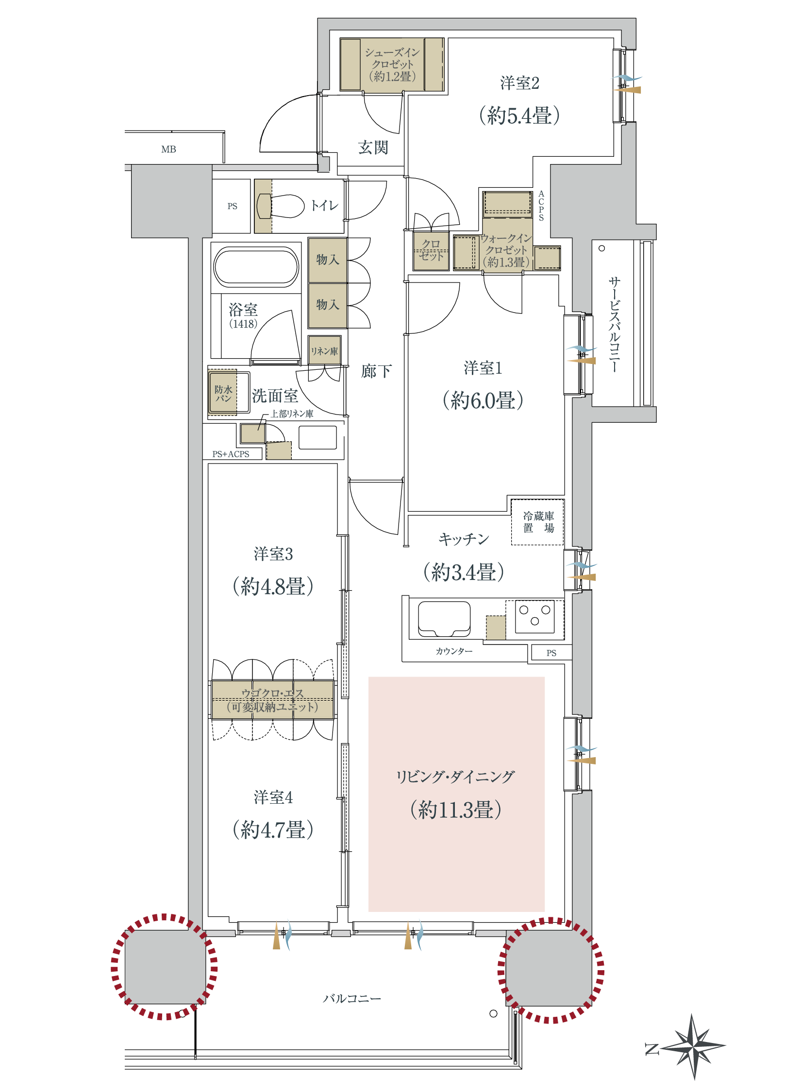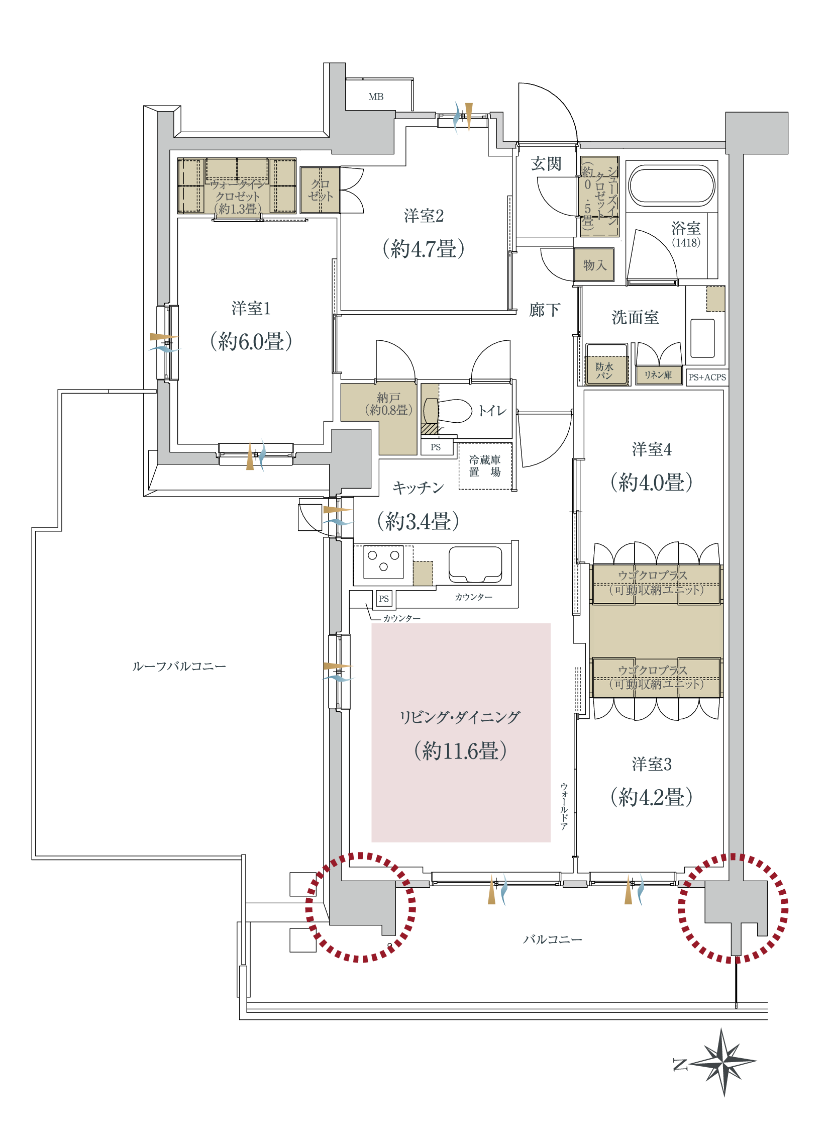 居室と収納空間の広さが変更できます。