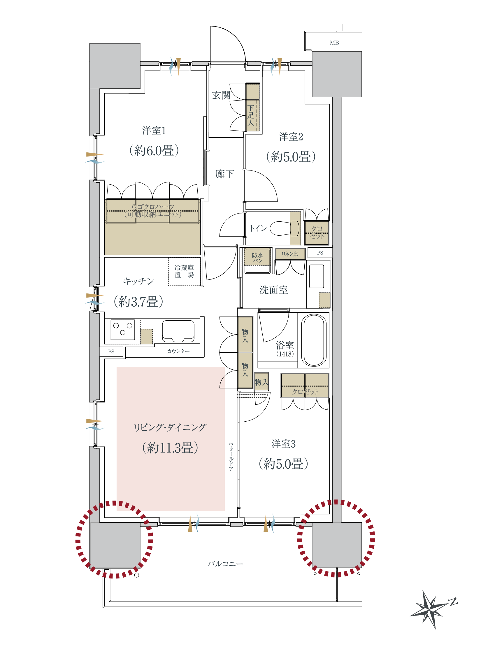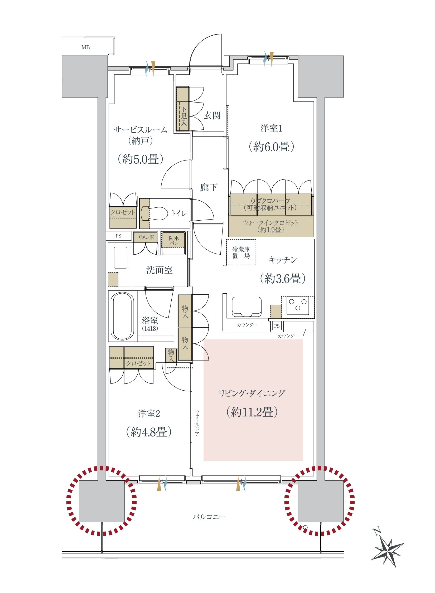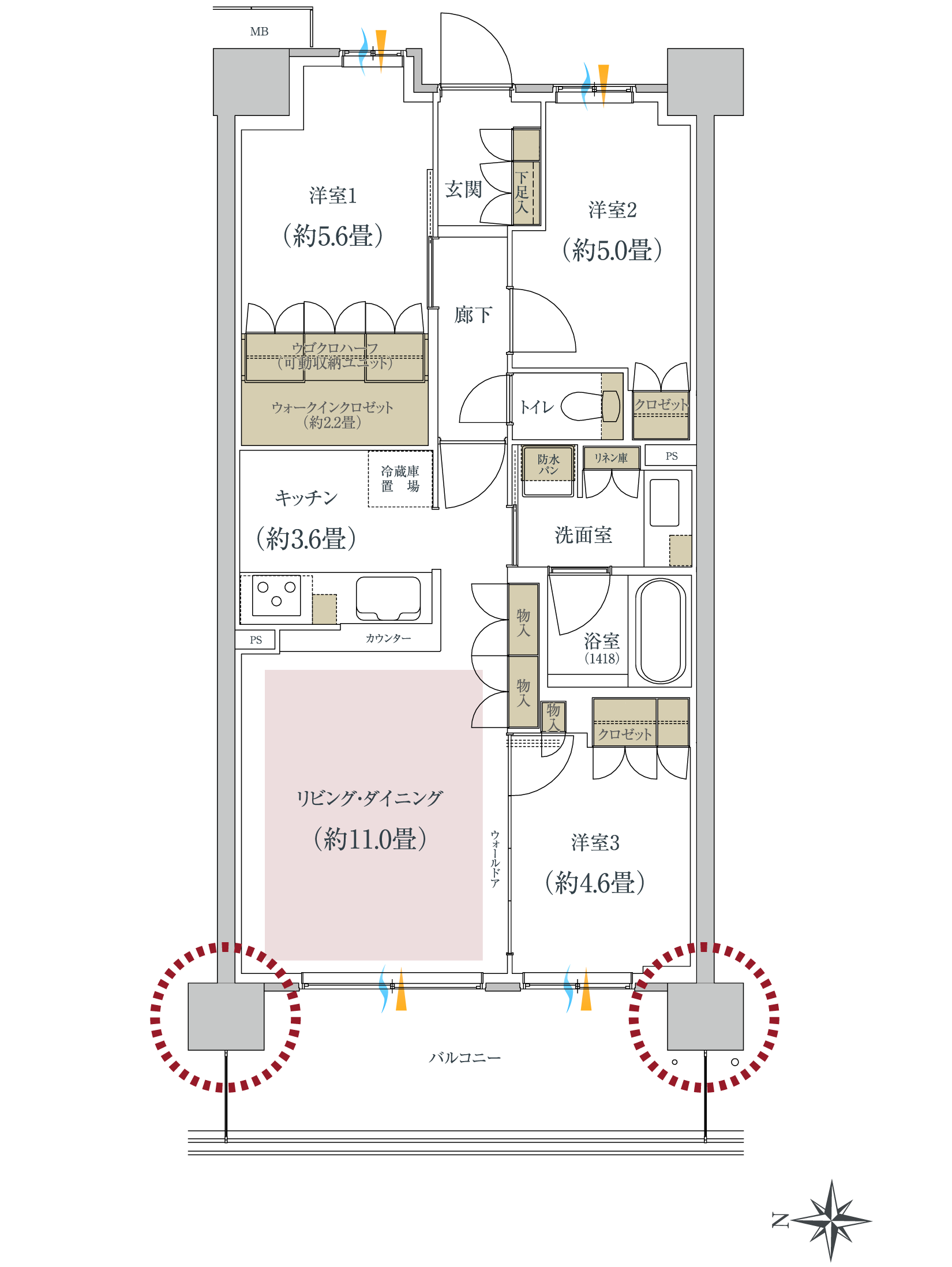 ご家族のライフスタイルに応える専有面積61㎡台〜84㎡台の多彩なプラン。