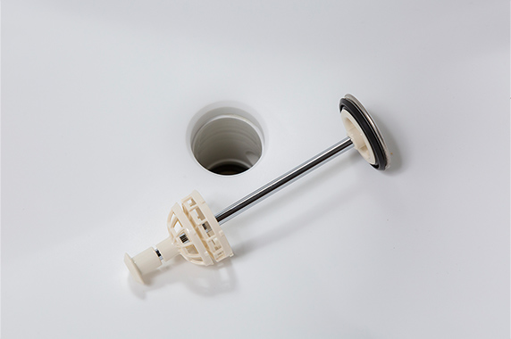 排水口のフランジ(金具)をなくして汚れをたまりにくくした排水口。清掃も手軽です。