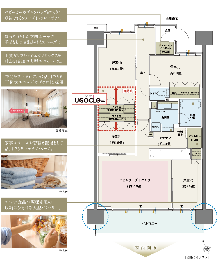 居室や収納の広さが変えられる「ウゴクロ」を採用