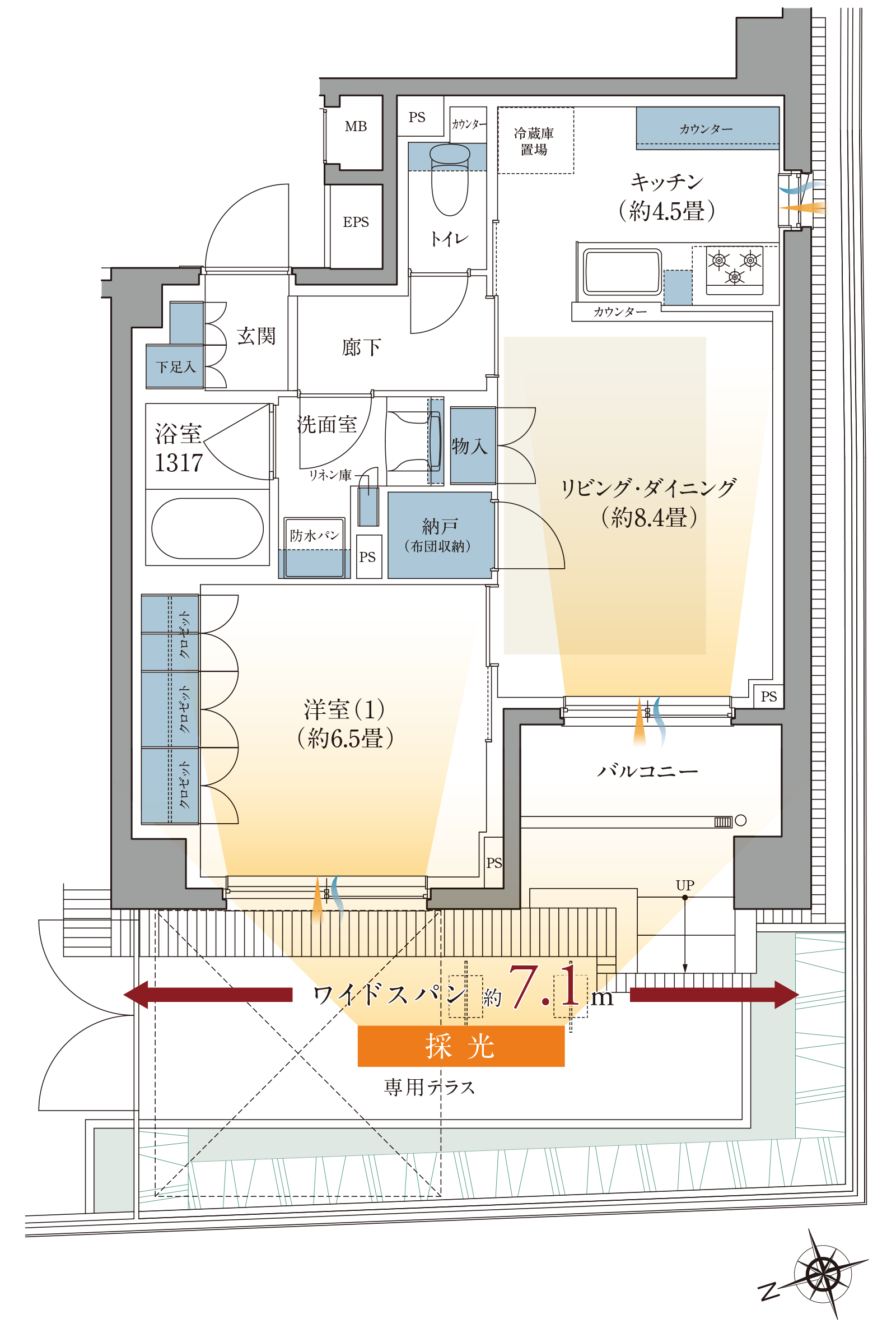 - ◻︎ 廊下をコンパクトにし居室空間を