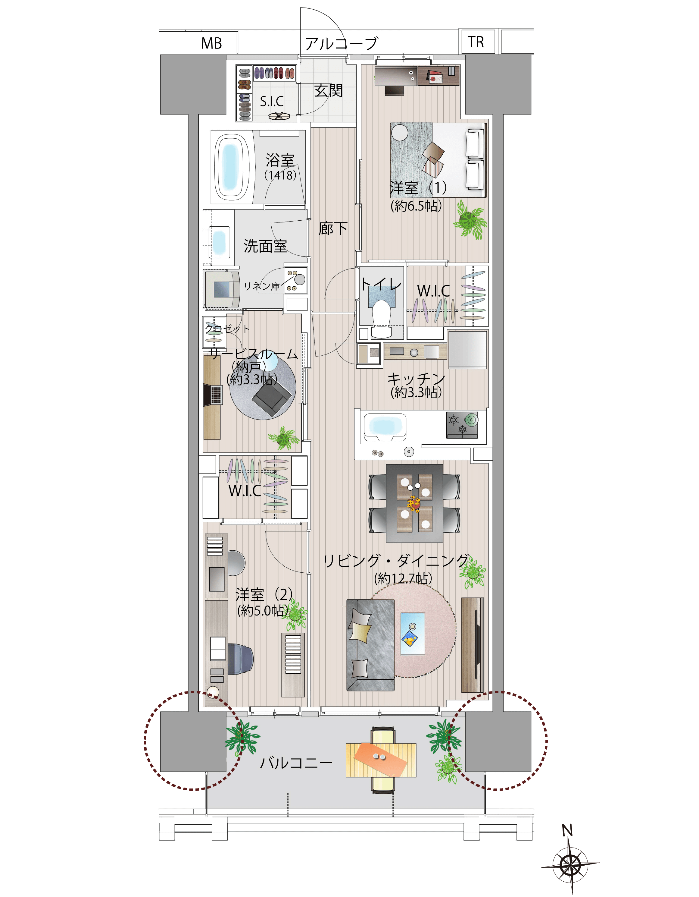 アルコーブ面積 2.18㎡ (約0.65坪)