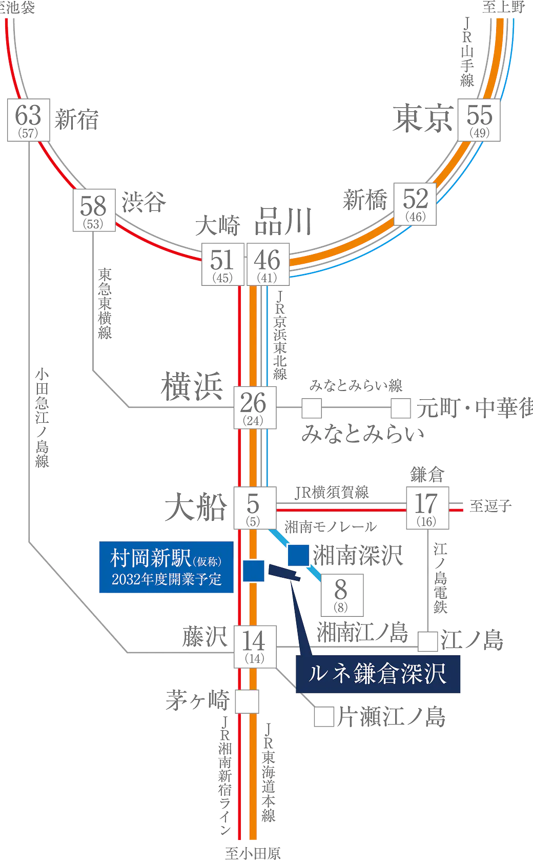 ※1.JR東海道線「(仮称)村岡新駅」2032年頃開業予定、現地より徒歩14分は概算値であり今後の計画により変更の可能性があります。