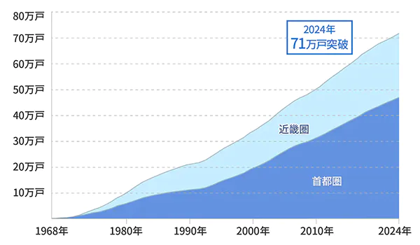 長谷工コーポレーション/累計戸数グラフ 用地取得から企画立案、設計・監理・施工まで一貫した体制で