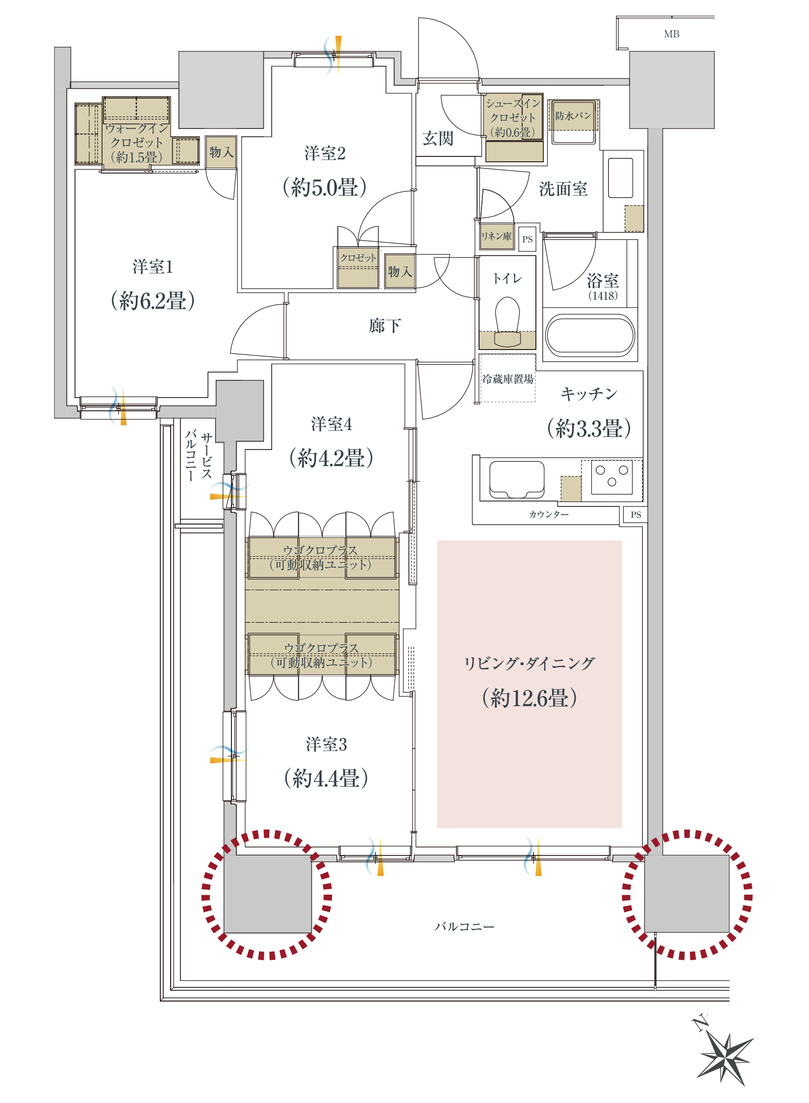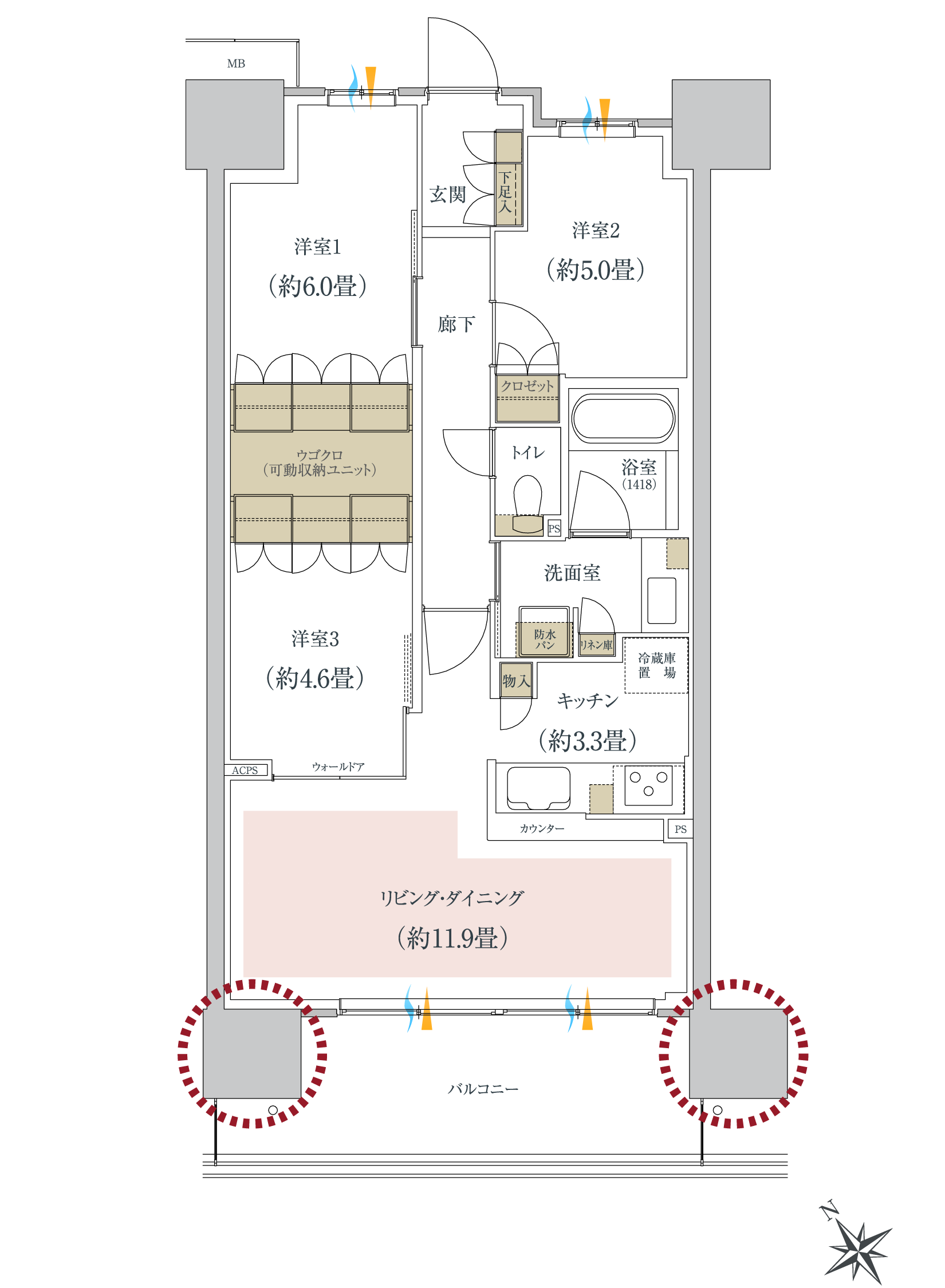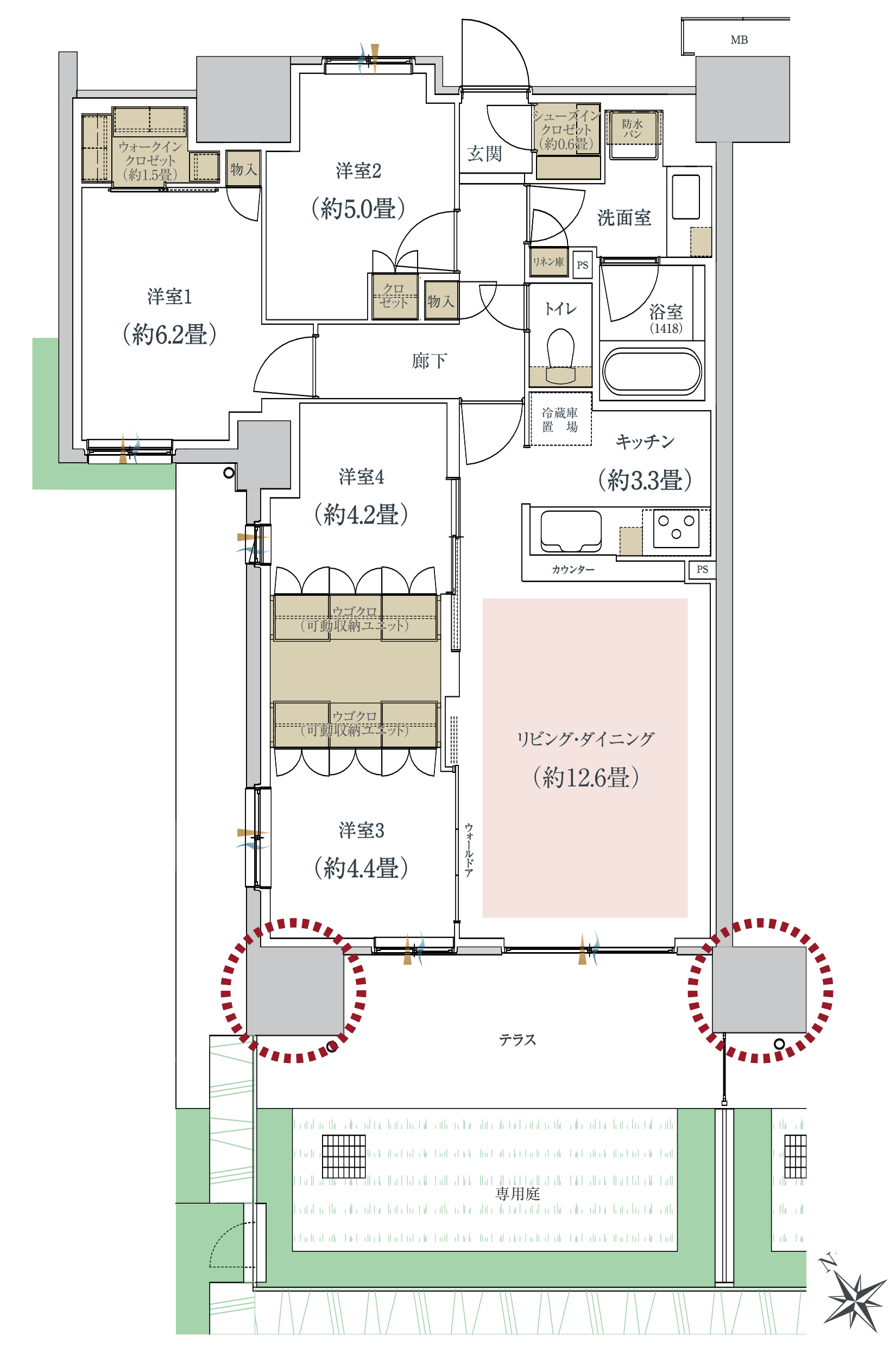 ご家族のライフスタイルに応える専有面積61㎡台〜84㎡台の多彩なプラン。