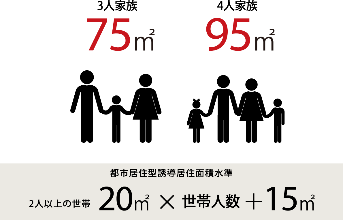 都市居住型・4人家族の場合、95㎡(※4)とされており、