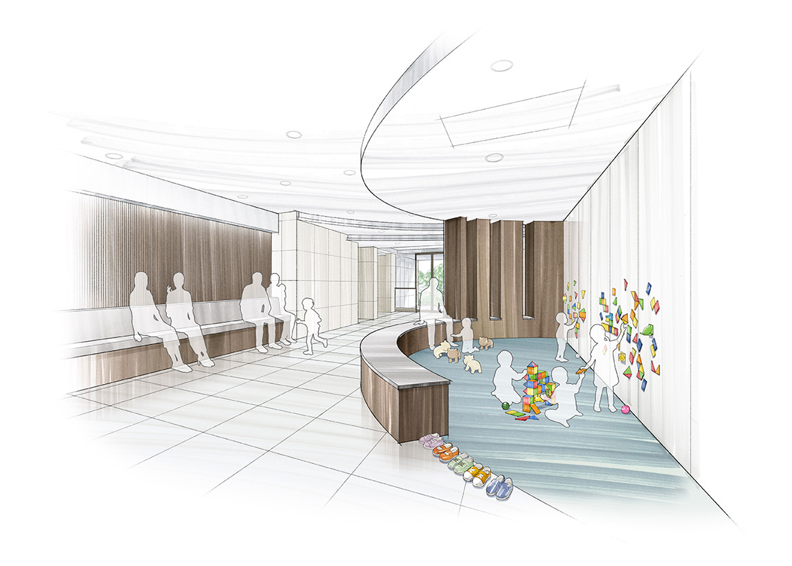 1階エントランス奥にはキッズスペースを設置。 「赤ちゃん本舗」のアンケート(※6)では、子どもを遊ばせる際の困りごととして 「雨・寒暑日に出かけにくい」「屋内で遊べる場所が少ない」ほか、 「近隣で同世代の子どもや子育て家庭と 知り合う機会が少ない」ことが挙げられています。 天候不順や少子化・共働き化の進行で外遊びや交流の機会が減る中、 キッズスペースは天候に左右されない遊び場であり、 親子同士が自然に交流できる場として機能します。
