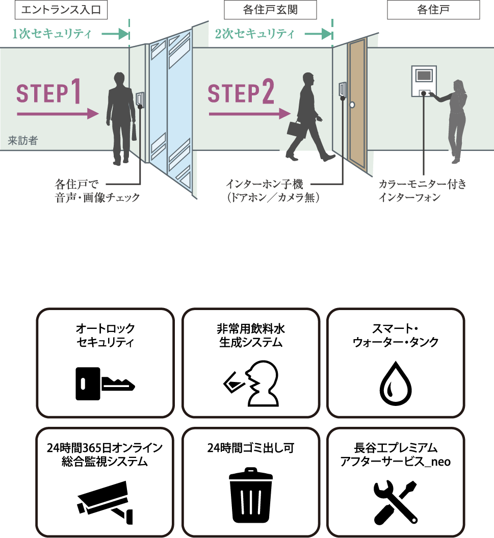 2重オートロックを採用。共用施設で生まれるコミュニティも防犯性を高め、 災害時共助の礎になります。 断水時に6日分の飲料水を供給する非常用飲料水生成システムや 非常用マンホールトイレなど、防災面も充実。 さらに「ルネ」シリーズは企画からアフターサービスまで一貫体制で、 施工会社の専任スタッフが不具合に迅速対応します。 また、管理費・修繕積立金は必要ですが、管理等がプロに任せられることから 住み替えるシニアも増えています。 24時間ゴミ出し可能なので、忙しい共働き世帯に便利です。 加えて、本物件は一次エネルギー消費量を20%以上削減する 「ZEH-M Oriented」認定を取得し、快適性と光熱費削減を実現。 「低炭素建築物」認定による税制優遇(※8)も受けられます。
