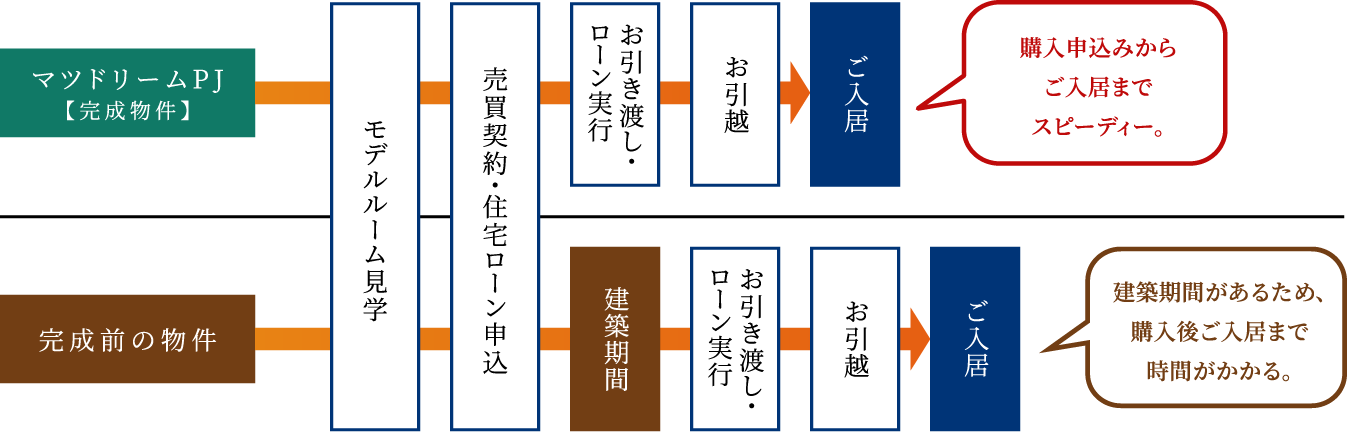 完成物件では、諸手続き完了後にスムーズに引き渡しができるので、ご入居までにかかる家賃などの経費も抑えられます。