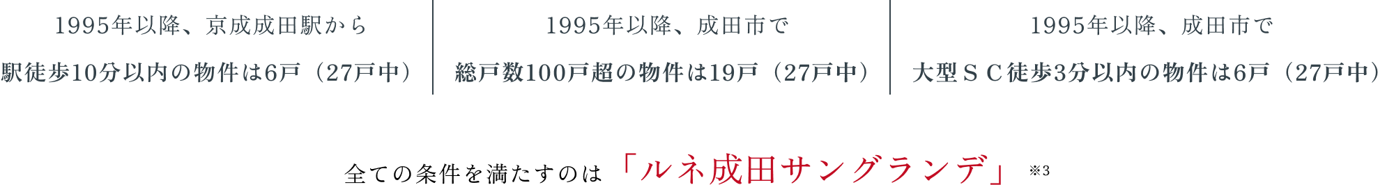 「成田」駅・「京成成田」駅最寄りで約12年ぶりに登場する「ルネ成田・サングランデ」。※2
