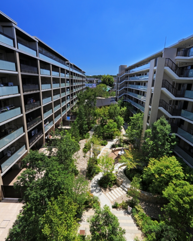 豊かな水と緑に包まれた高台立地を活かした計画で、緑の都市賞・国土交通大臣賞、屋上緑化大賞・環境大臣賞受賞